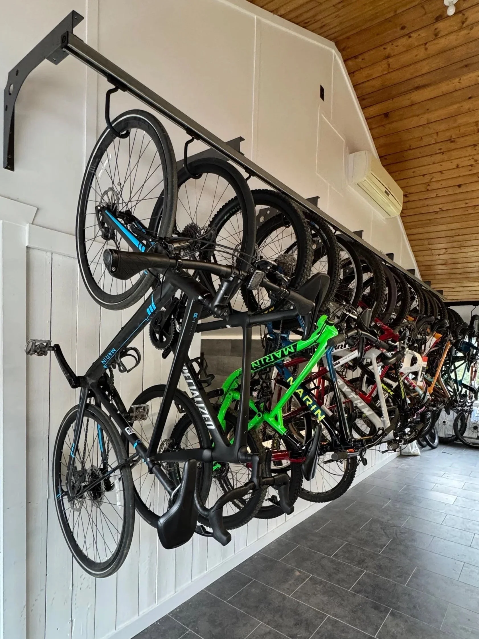 Schiene montieren, GearBlocks Hooks einsetzen, Bikes einhängen.